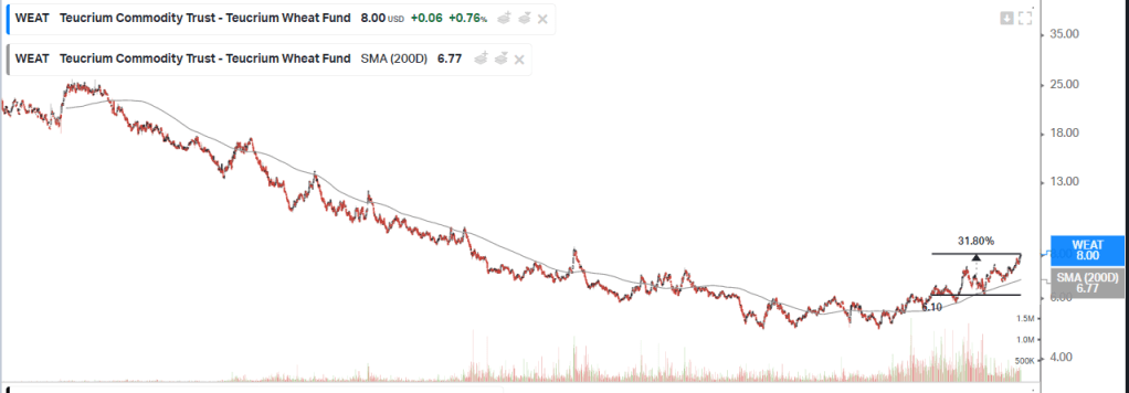 Now, for my next theme that I’m looking at is something very much so not entrancing. It’s one of the most basic of basic things in this world. It’s not a flying car company, it’s not another Elon bubble, it’s Wheat.