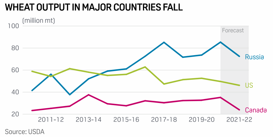 This shortage, in return has caused wheat prices to rise in these exporting countries.