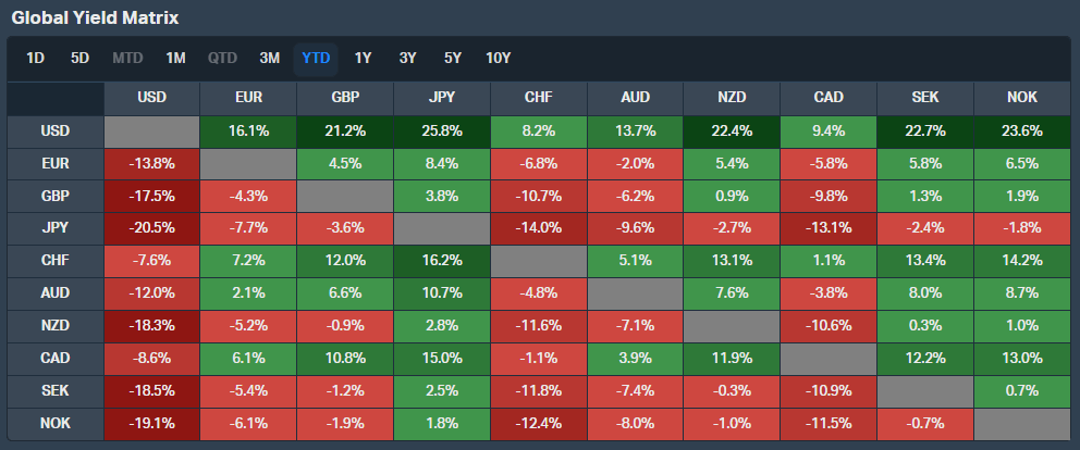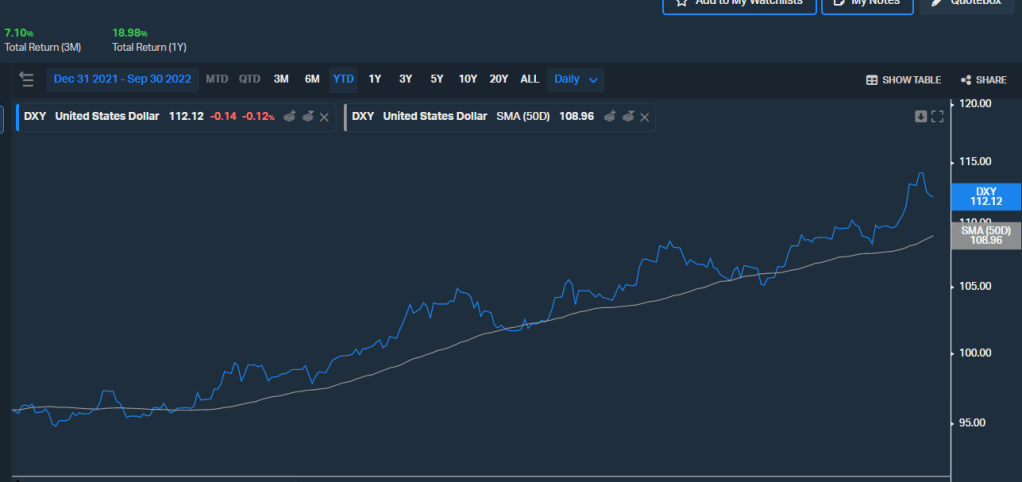 The Fed has continued raising interest rates to fight inflation in the U.S which has caused the dollar to gain this momentum against other currencies. Earlier this week the Bank of England avoided a liquidity event by running to the money printer, which increases the dollar strength further. The Currency market which has longstanding been a boring one is on fire the last few months. All you need to do to see this is look at the top row and first column of the heatmap below.