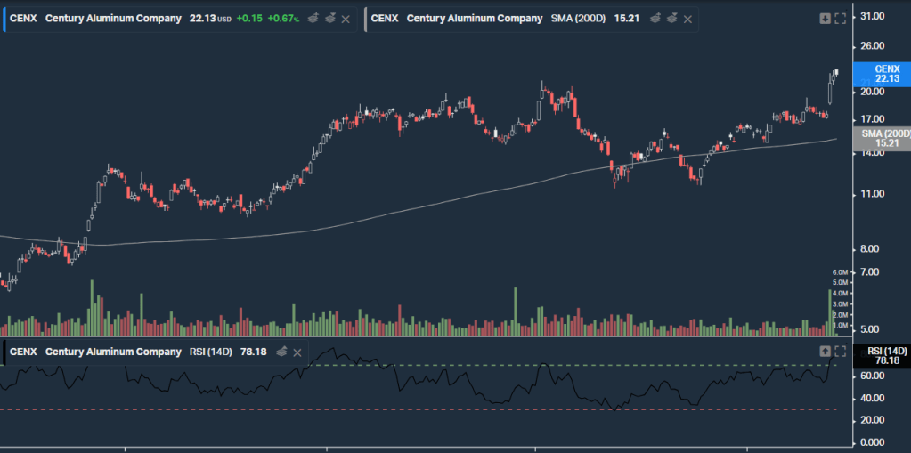 As I thought through this trade last week, I ended up buying the stock Century Aluminum (CENX).
