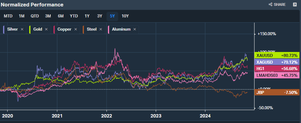 Below you can see the YTD price of aluminum from 2200 range and now hovering in the 2400-2500 range.